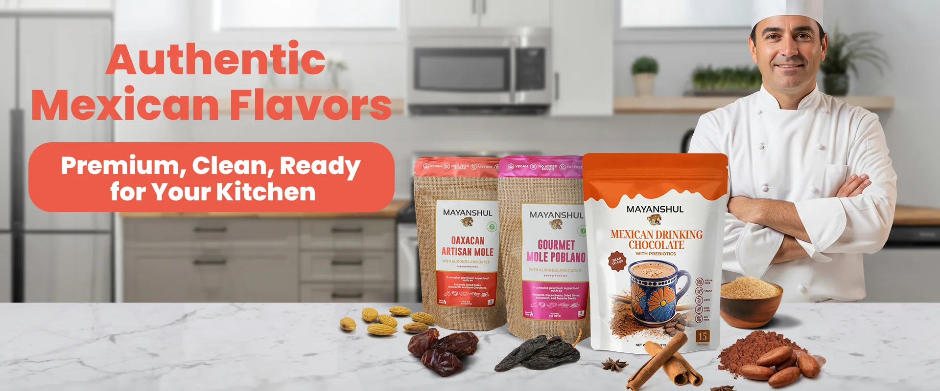 Because at Mayanshul, we believe Mexican cuisine can be deeply authentic, richly flavorful, and truly healthy. We reimagine ancestral recipes through a modern lens, crafting Premium healthy Mexican products made with clean ingredients and free from everything that inflames the body: no added sugars (no piloncillo), no seed oils, no gluten, and no preservatives.